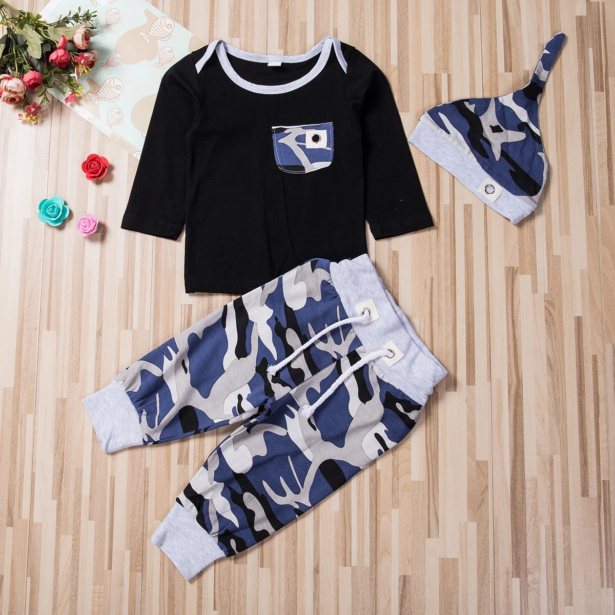 Pudcoco 0-24M Новая повседневная одежда для мальчиков Carters новорожденный младенец мальчик 3 шт одежда топ длинные штаны шляпа комплект одежды