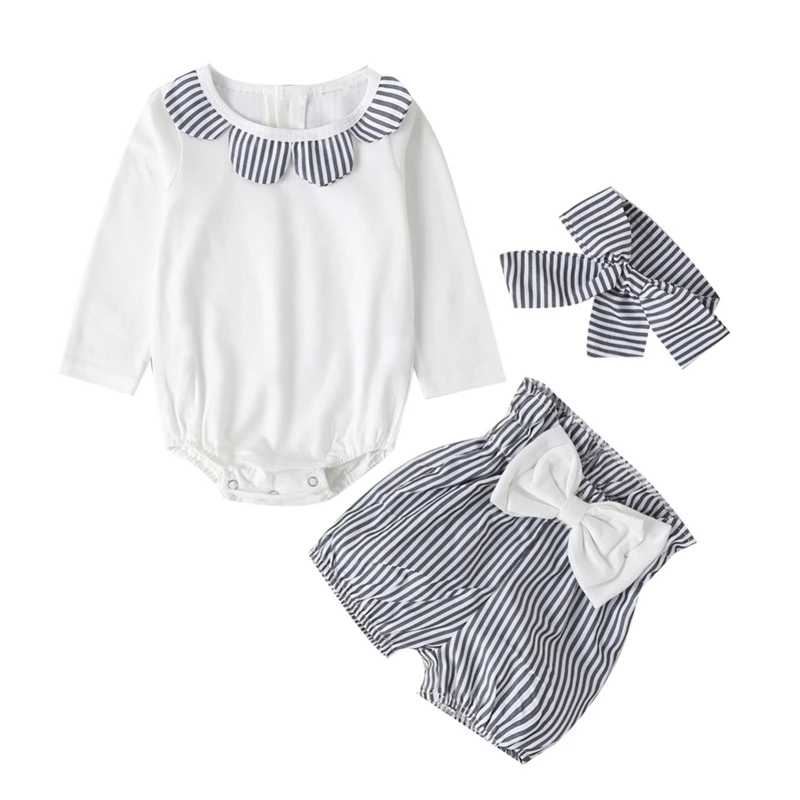 Горячая Распродажа 3 шт./компл. летнее платье для маленьких девочек; хлопковый комбинезон с длинным рукавом однотонные Топы с коротким рукавом штаны и повязка на голову костюм, детская одежда