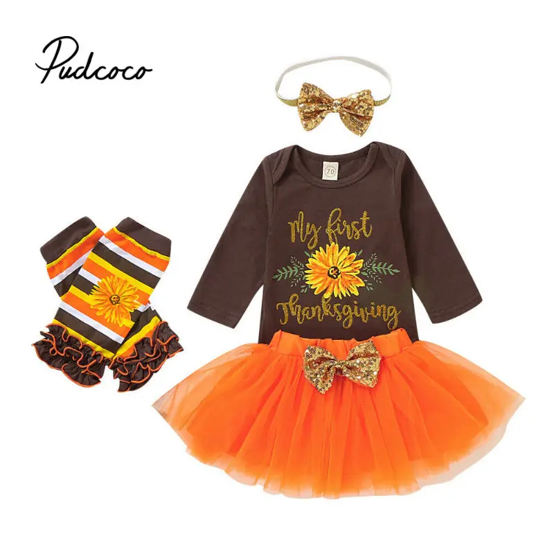 Одежда для новорожденных мальчиков и девочек Комбинезон с надписью для новорожденных Топ + юбка-пачка комплект одежды с надписью «My First Thank»,...