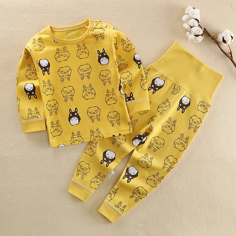 Детская осенняя одежда с длинными рукавами Брендовое хлопковое пальто с рисунком для мальчиков и девочек + длинные штаны пижамы с принтом и...
