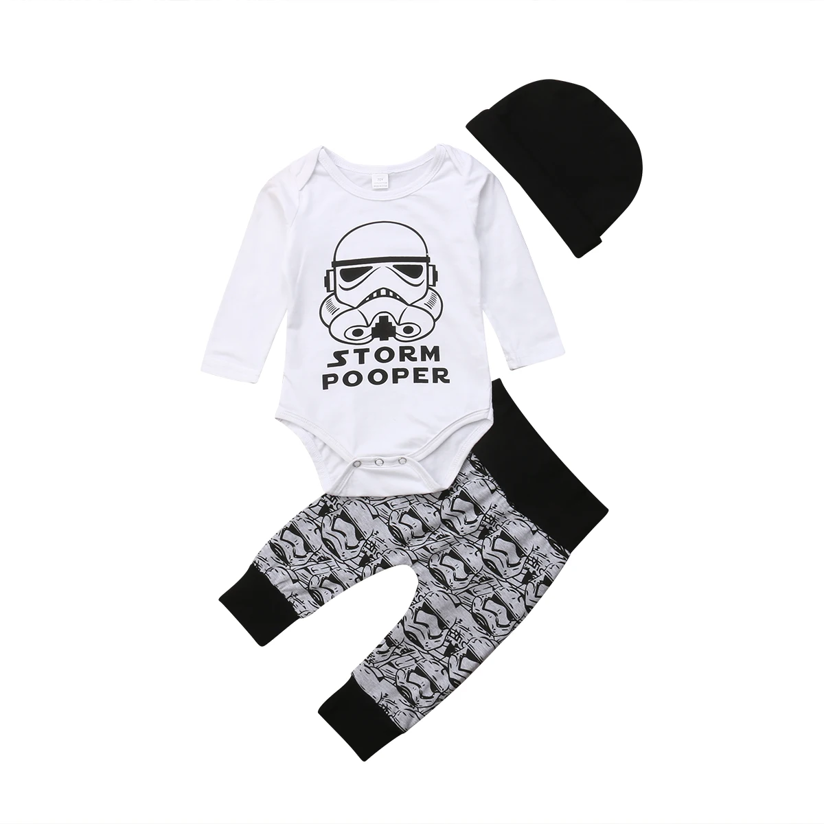 Мода новорожденных для маленьких мальчиков Шторм Засранец Комплекты одежды новый длинным рукавом боди с героями мультфильмов Топы Длинные...