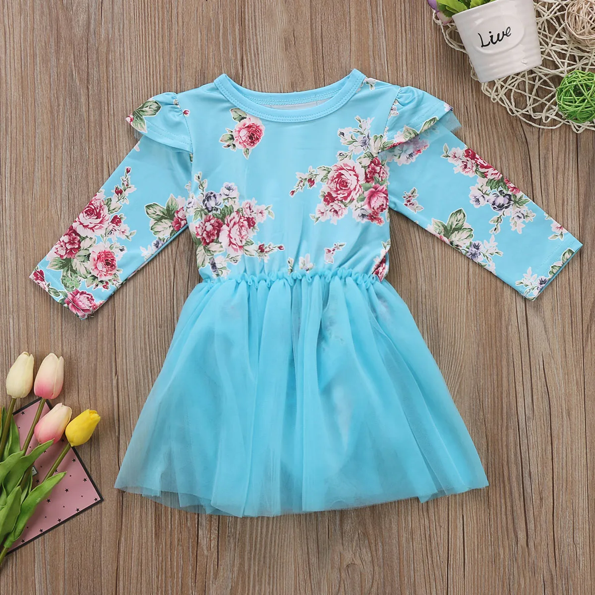 2020 Сетчатое платье-пачка с цветочным рисунком для новорожденных девочек милые платья с длинными рукавами и круглым вырезом, костюм, одежда
