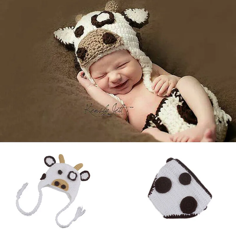 Сумасшедшая корова дизайн вязаная, для младенцев костюм детские длинные косы шапочки шляпа ручной работы детская пеленка Обложка фото рекв...
