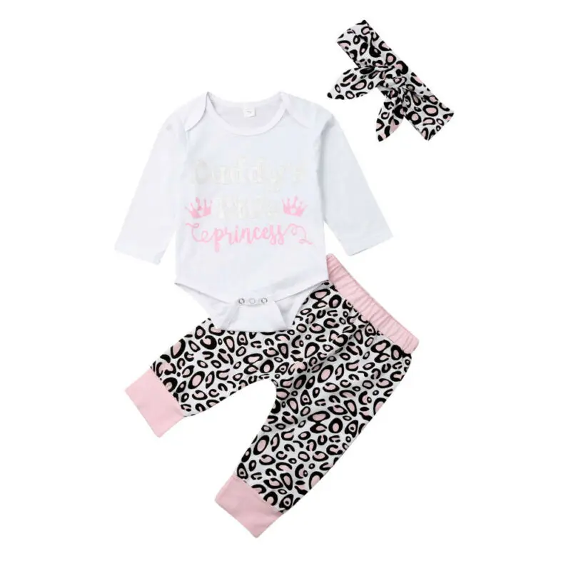 Одежда для новорожденных девочек из 3 предметов комбинезон с длинными рукавами + леггинсы с леопардовым принтом, штаны, осенняя одежда для девочек, комплекты с принтом животных