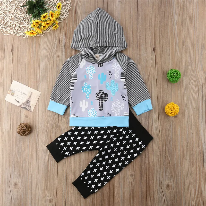 Осень с длинным рукавом кактус Толстовка Толстовки Брюки Одежда для мальчиков и девочек 2 шт. Одежда для новорожденных девочек и мальчиков к...