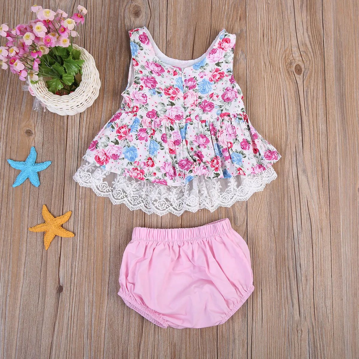 Цветочный принт Платье для маленьких девочек цветочный рюшами Лето Без Рукавов наряд Топ праздничное платье принцессы Комплект одежды