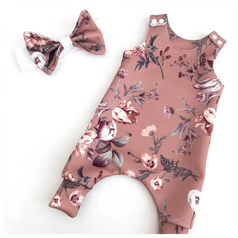 Новая мода новорожденных Одежда для детей; малышей; девочек цветок комбинезон без рукавов комбинезон комплект одежды из 2 предметов