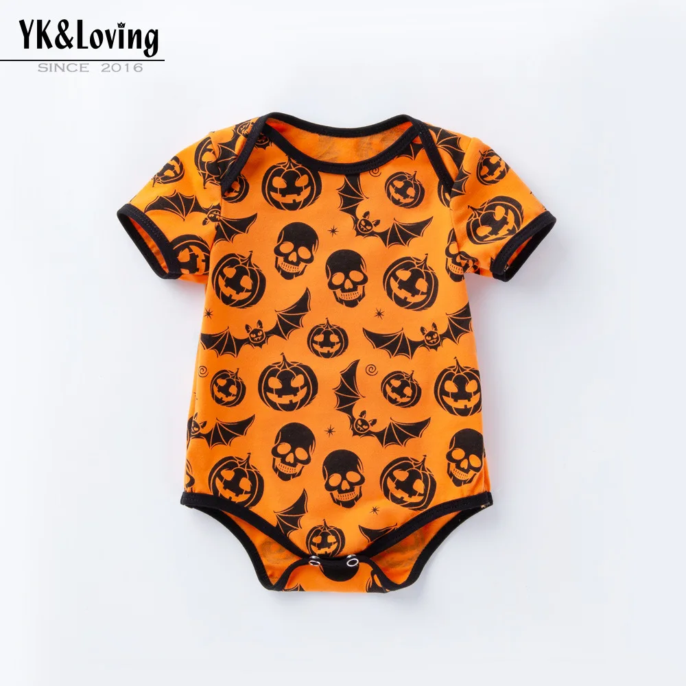 Детский боди на Хэллоуин с принтом «летучая мышь» и «Тыква», одежда для маленьких девочек и мальчиков, летняя одежда с короткими рукавами дл...