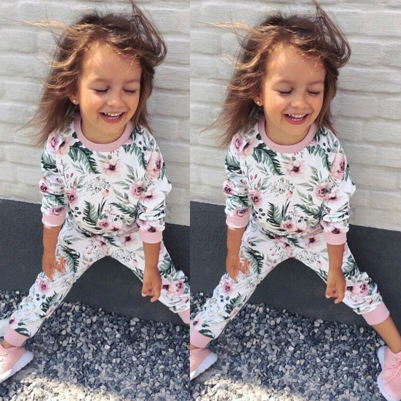 Новорожденных Одежда для детей; малышей; девочек цветок хлопковая одежда Комплекты с длинными рукавами с цветочным рисунком Топы + штаны 2 ш...