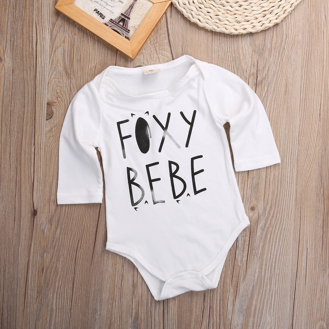 Новорожденных Для маленьких мальчиков девочек белый письмо с принтом лисы боди с длинным рукавом комбинезон Смешанный хлопок Повседневная...