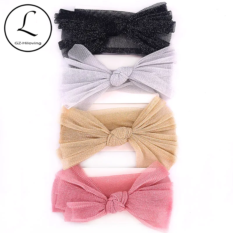 Одежда для маленьких девочек металлический узлом бантом хлопок повязки на голову, новые летние тонкие эластичные аксессуары, ленты для вол...