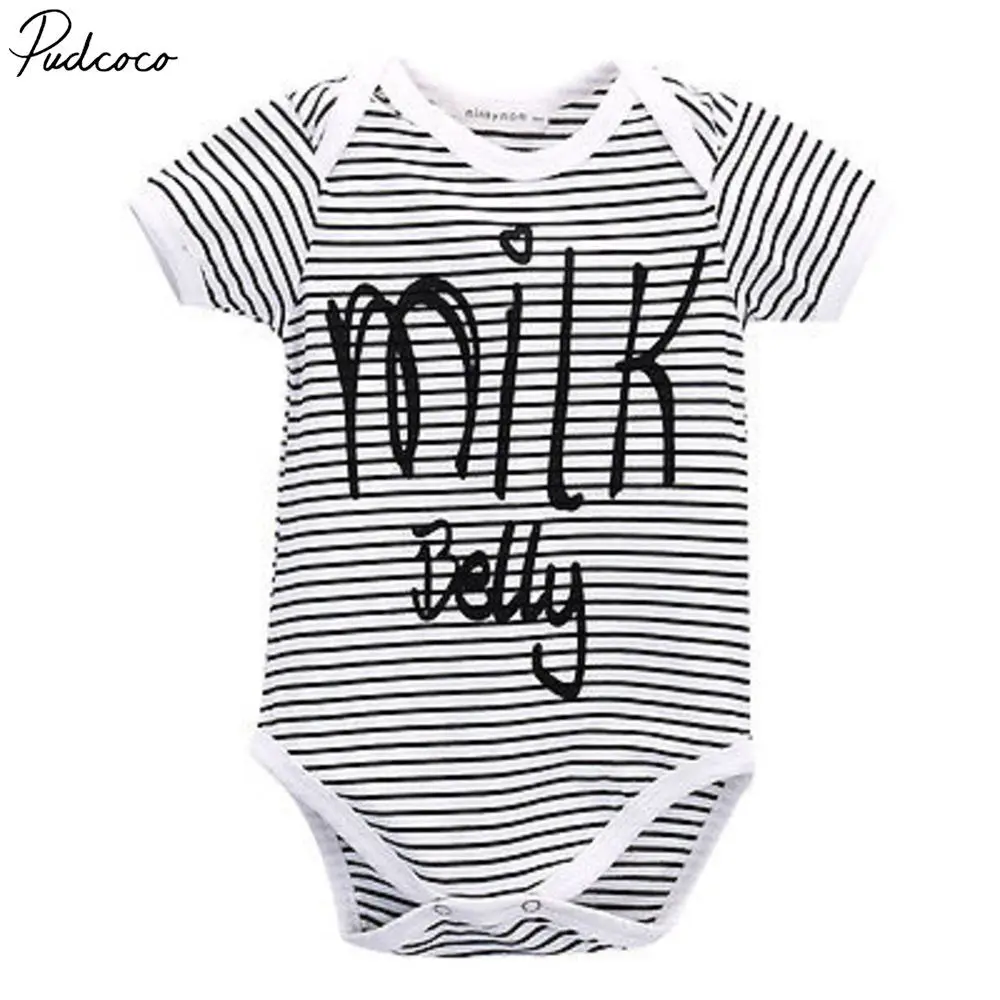 Pudcoco новорожденных одежда для малышей и мальчиков постарше Мода хлопок короткий рукав белый и черный полосатый боди наряды 6-24Months Helen115