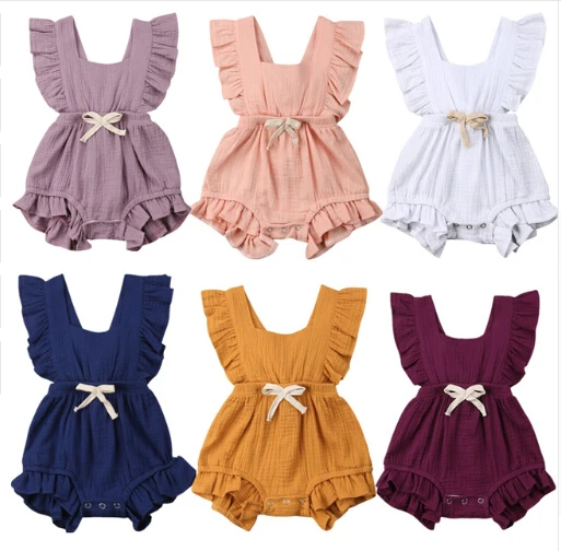 Для новорожденных девочек рюшами одним Pieces без рукавов Цвет спинки комбинезон с бабочкой Детские комбинезоны летняя хлопковая одежда для д...