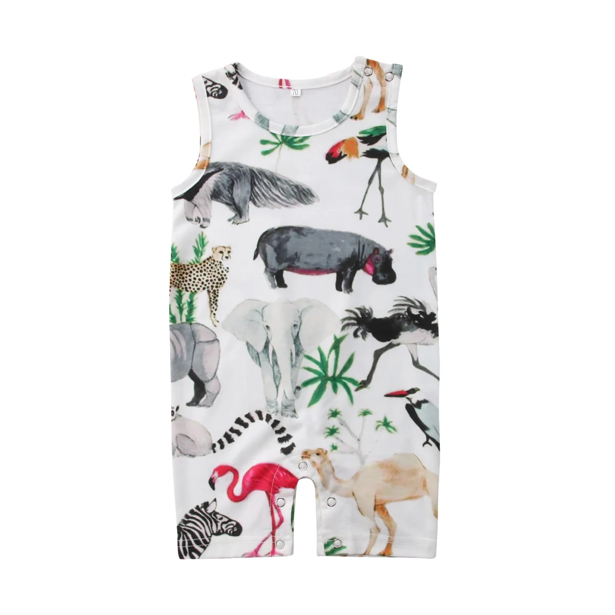 Летняя одежда для новорожденных детей для маленьких мальчиков и девочек, принт с животными, комбинезон с цветным узором комбинезон купальн...