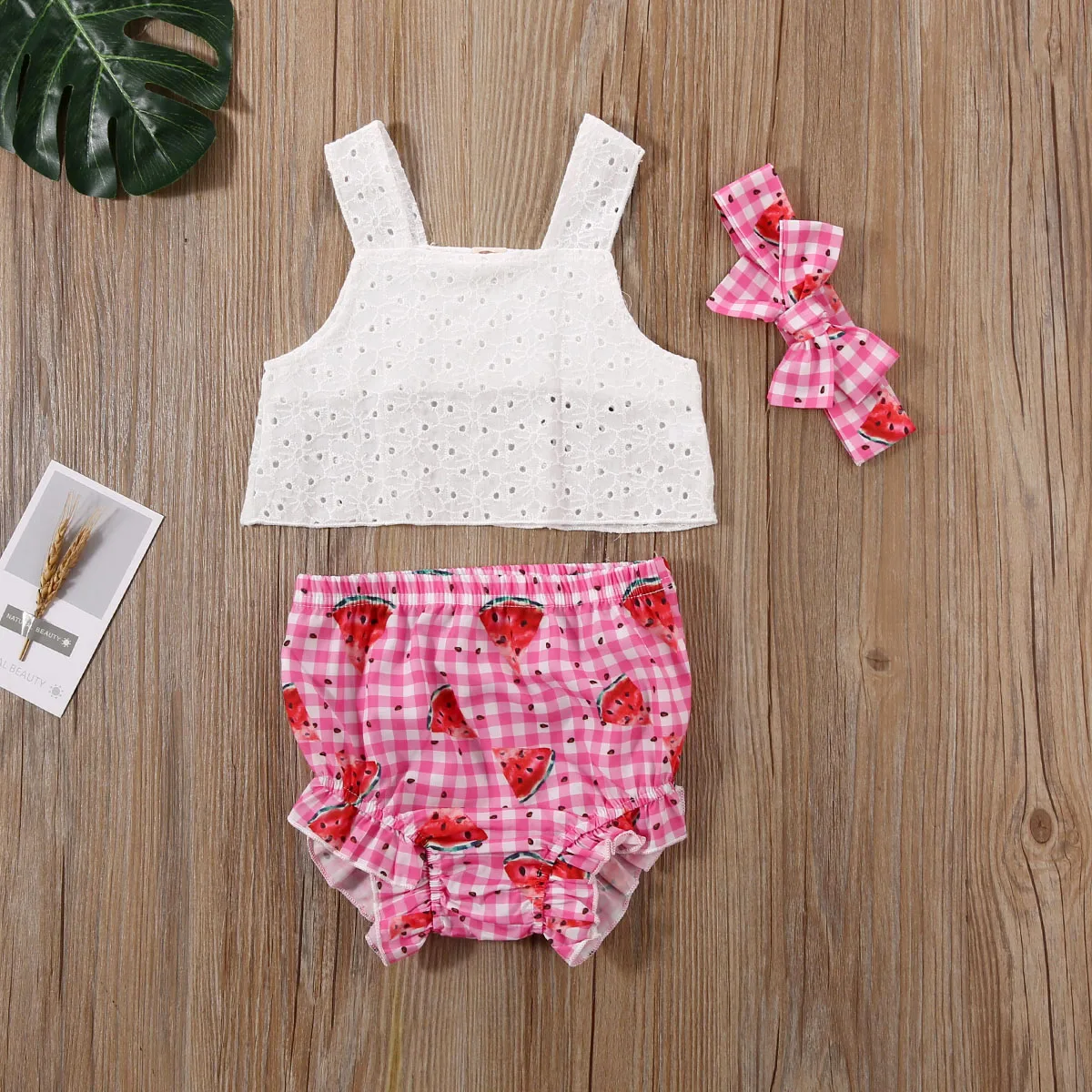 Pudcoco/Одежда для новорожденных девочек летняя кружевная жилетка без рукавов топы, шорты с фруктовым принтом повязка на голову, комплект одежды из 3 предметов