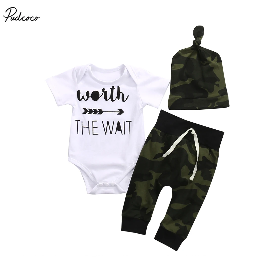 Стоит подождать хлопковый комбинезон одежда для маленьких мальчиков и девочек наряд короткий рукав комбинезон камуфляж Брюки для девочек ...