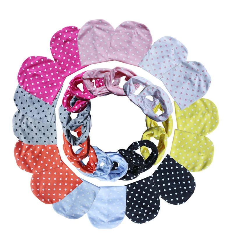 Осень-зима хлопок трикотажные детские Звезда Сердце в горошек шапка шарф Набор мультфильм детей Шапки мальчиков и девочек шарф Кепки
