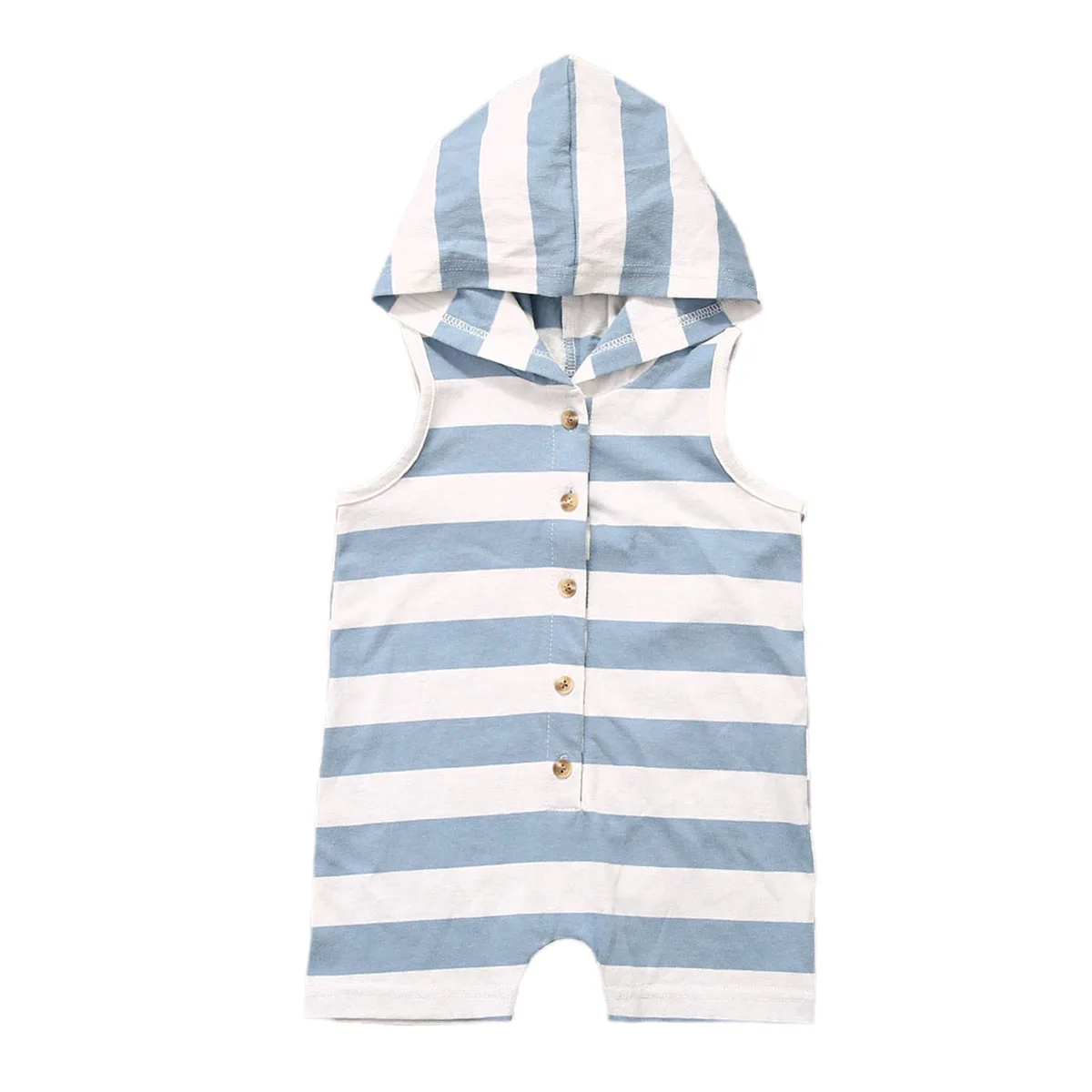 Pudcoco/1 предмет; Одежда для маленьких девочек; Полосатый комбинезон без рукавов с капюшоном; Цельный комбинезон с капюшоном