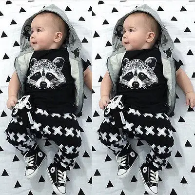 Горячие продать новорожденных малышей мальчиков и девочек наряды Симпатичные Фокс футболки x брюки леггинсы повседневные комплекты одежды...