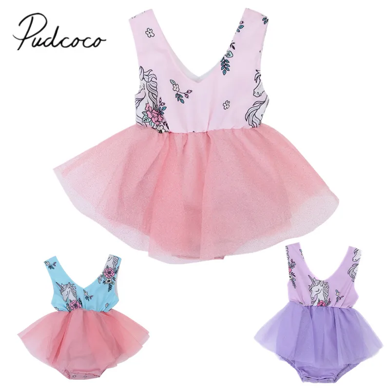 2018 Фирменная Новинка для малышей милые для новорожденных девочек Лето Единорог Кружевное платье-пачка комбинезон нарядное платье без рука...