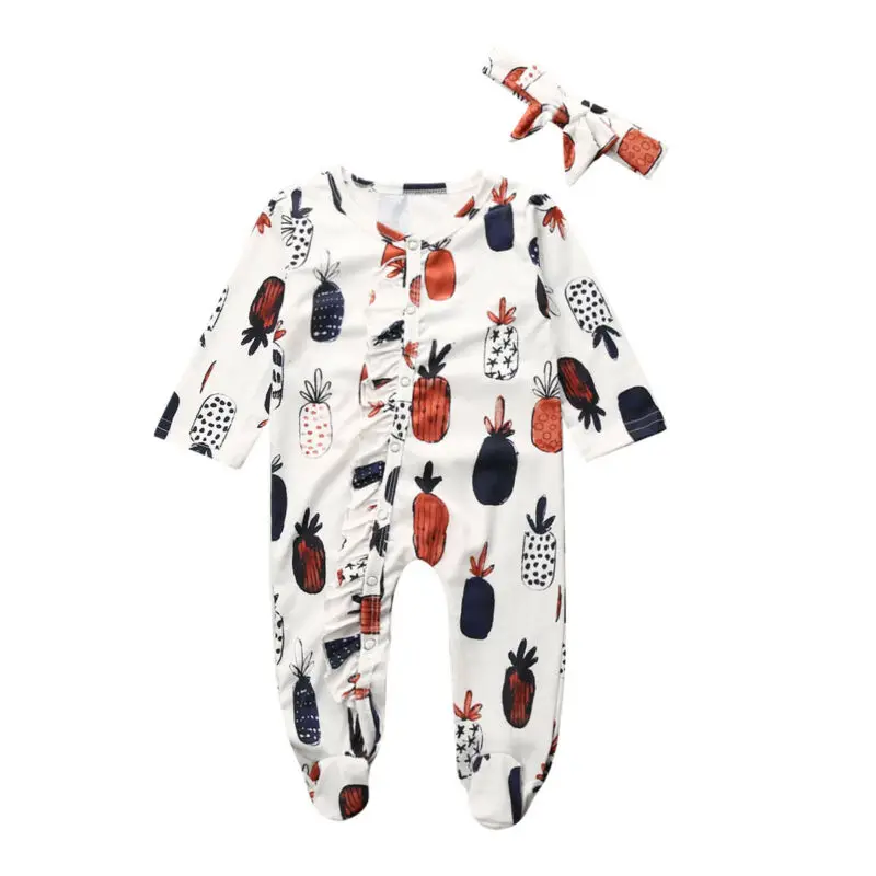 Pudcoco/одежда с длинными рукавами для новорожденных девочек; принты с ананасом на пуговицах; повязка на голову; Спортивный костюм; сезон весна-...