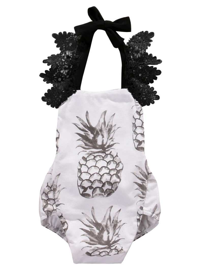 Новинка 2017 года; Милый Летний кружевной комбинезон с рисунком ананаса для маленьких девочек; кружевной комбинезон с лямкой на шее; цельнокр...