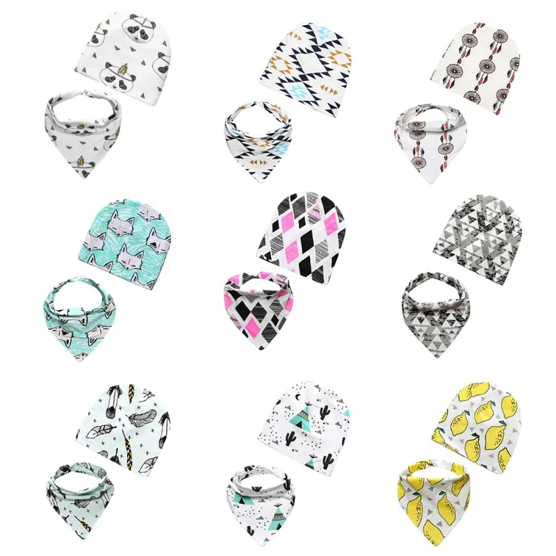 Весенняя детская шапка комплект + нагрудник ткань милый мультфильм печати шапка для маленьких мальчиков хлопок вязание шляпка для девочки ...