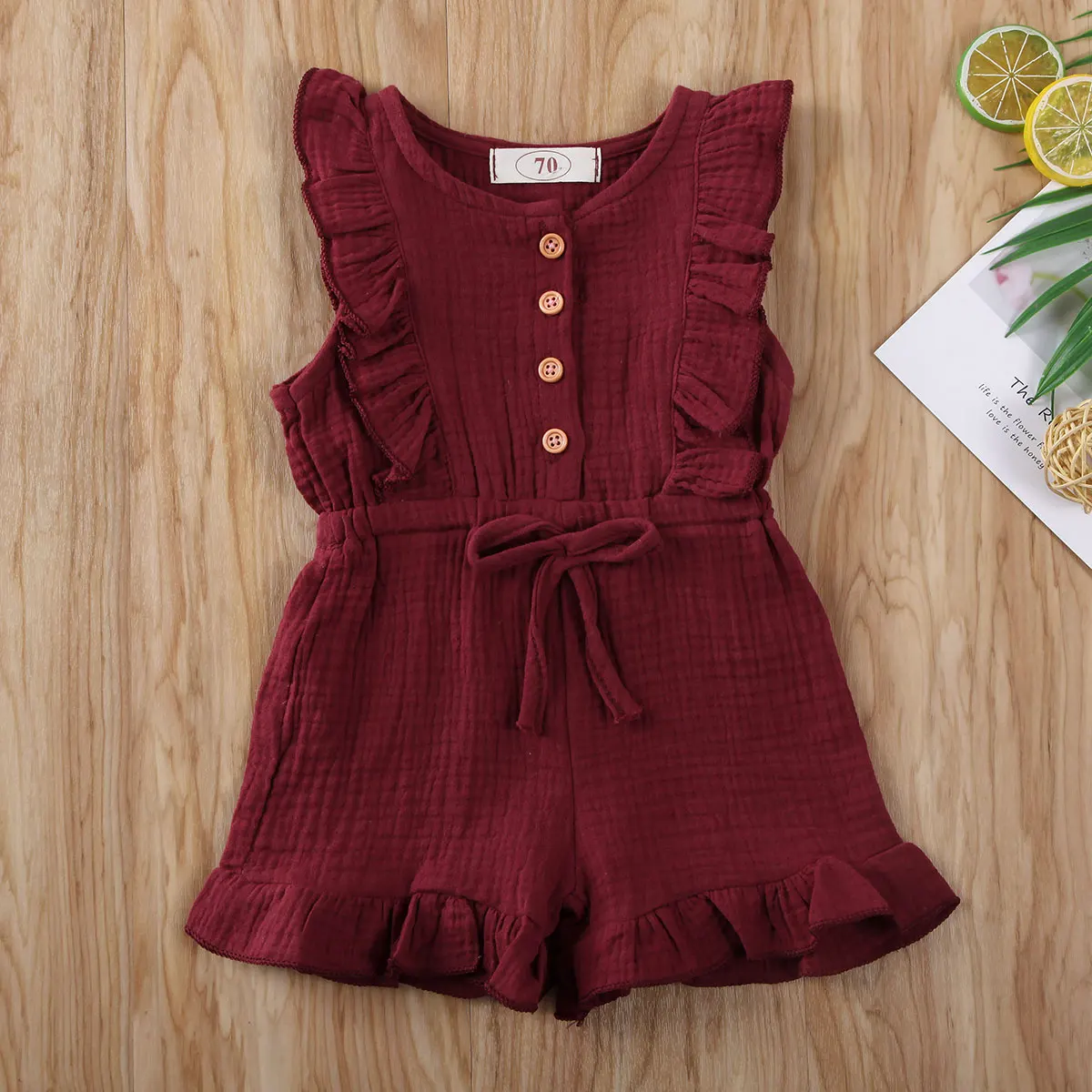Pudcoco/Одежда для маленьких девочек; однотонный трикотажный хлопковый комбинезон без рукавов с рюшами; комбинезон; комплект из одного предмета; пляжный костюм; одежда
