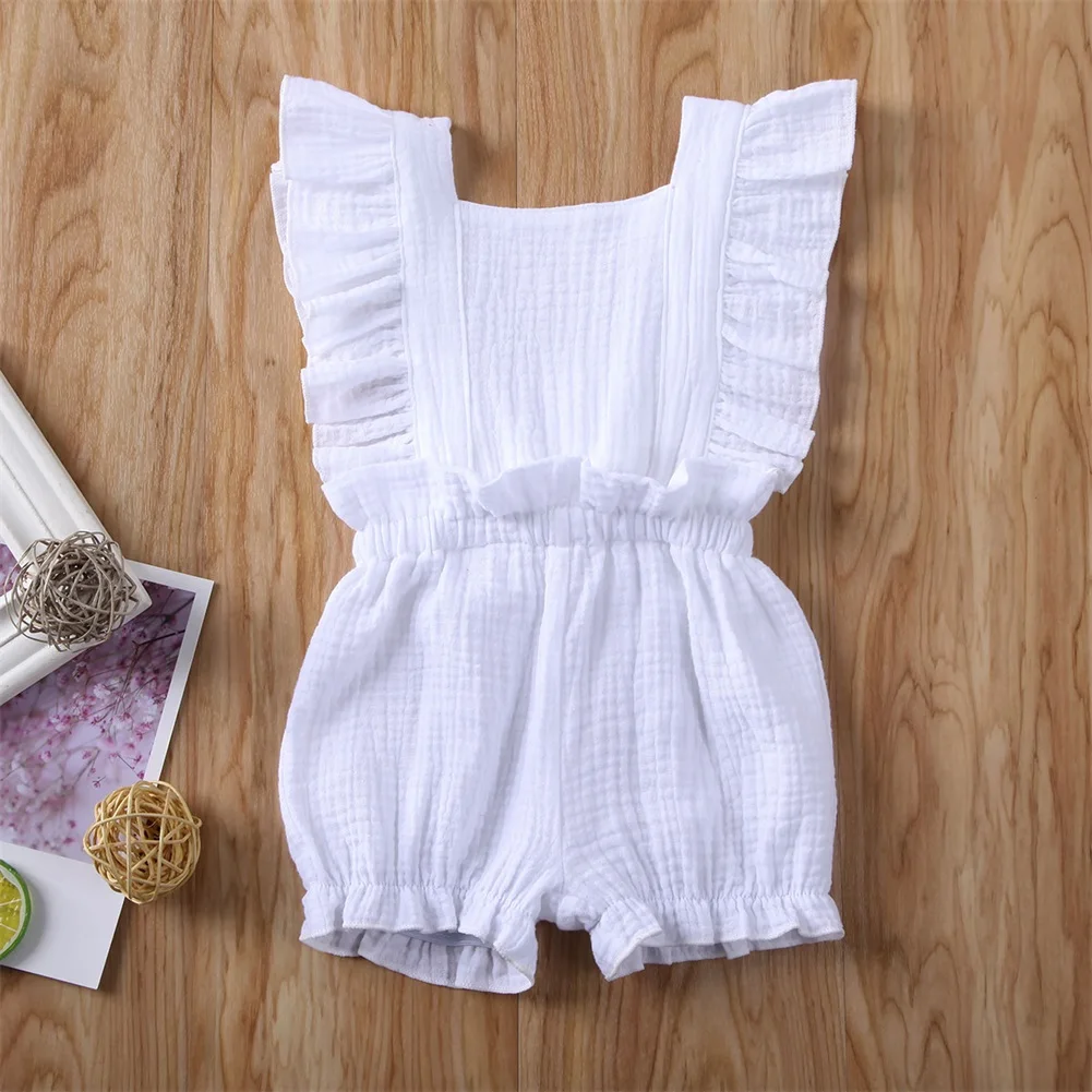 Pudcoco/Одежда для новорожденных девочек; однотонный трикотажный хлопковый комбинезон без рукавов с оборками; комбинезон; пляжный костюм