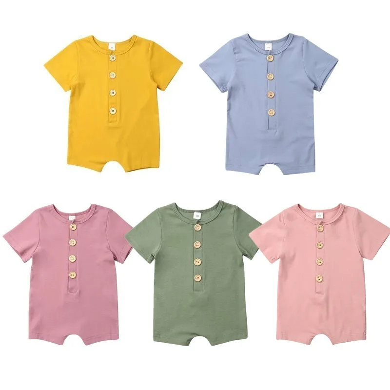 На возраст от 0 до 18 месяцев, для новорожденных, для маленьких мальчиков и девочек короткий рукав Твердые Цвет хлопковый комбинезон комбинезон, костюм, детская одежда