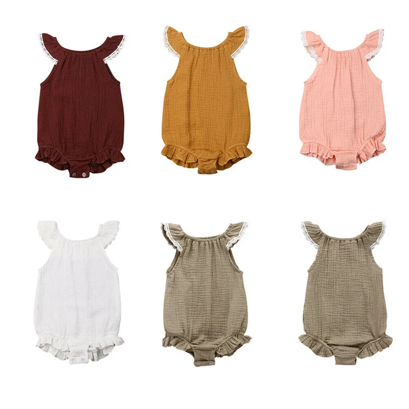 Летний хлопковый комбинезон 2019 Высокое качество для новорожденных девочек с оборками без рукавов Одноцветный комбинезон наряд Одежда маленьких