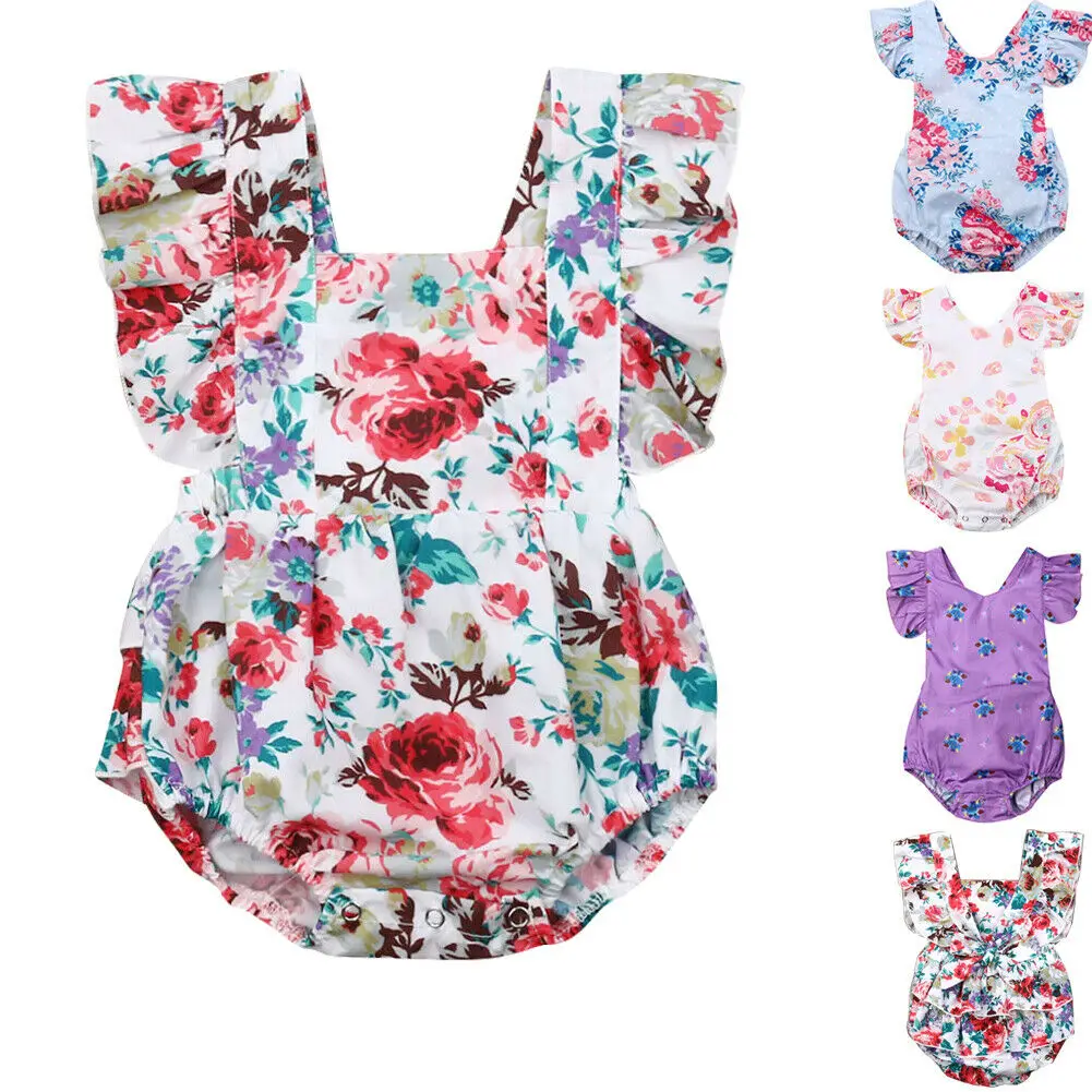 Милый комбинезон-боди для игр с оборками и рукавами для новорожденных девочек от 0 до 18 месяцев летний сарафан