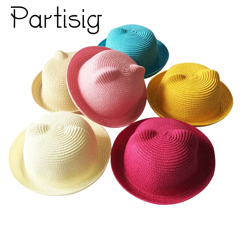 2018 летние дети Шапки соломы уха Кепки для девочек мультфильм Солнцезащитная шляпка для Мальчиков пляжные полями засучить ребенка кепки