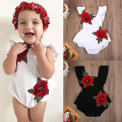 Новорожденных для маленьких девочек хлопок рюшами комбинезон без рукавов комбинезон Повседневная одежда