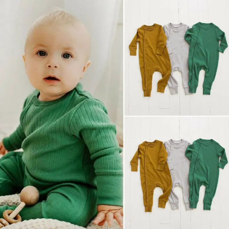 2019 детская одежда на весну-осень, хлопковый комбинезон для новорожденных мальчиков и девочек, трикотажный комбинезон в рубчик, однотонная о...