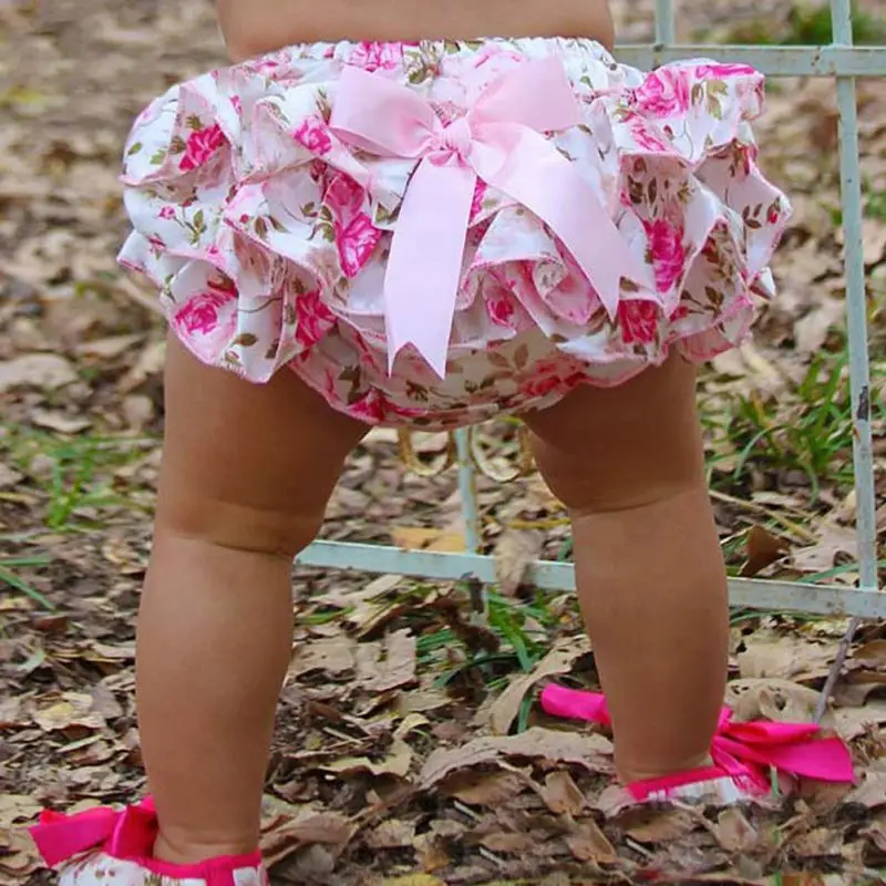 Новинка 2019 года милые инфрант одежда для малышей Цветочный Шелковый лук атласные шорты трусики с оборками на подгузники Bloomer для девочек Ат...
