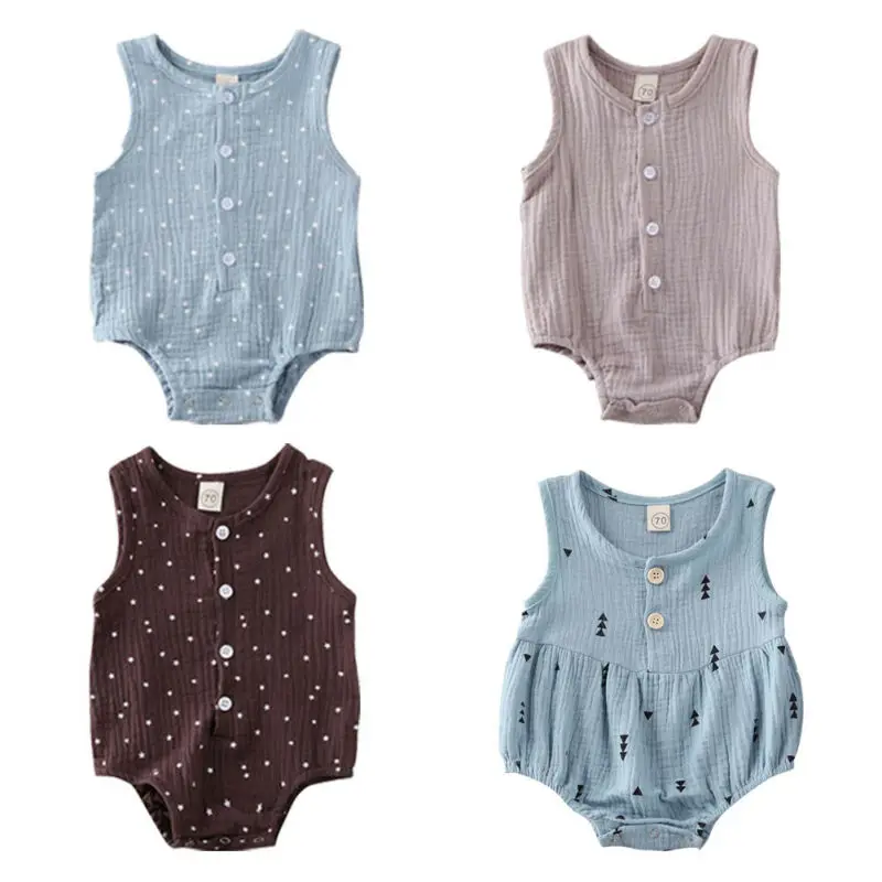 Милая Одежда для новорожденных девочек и мальчиков летний комбинезон без рукавов с принтом для маленьких девочек и мальчиков, хлопковый комбинезон с пуговицами, 1 шт.