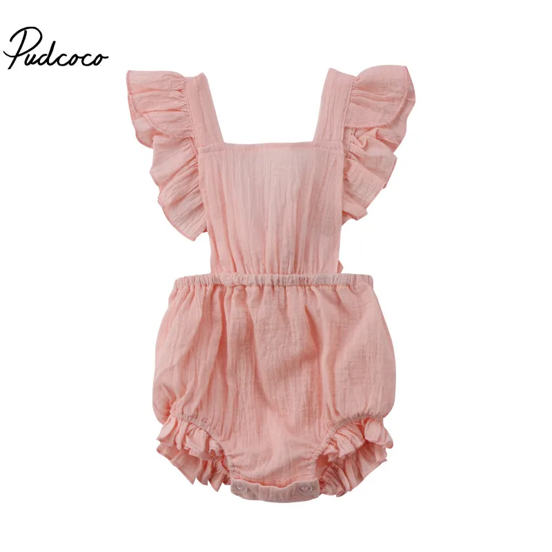 Pudcoco/2018 г. Летние комбинезоны для маленьких девочек, однотонные Детские боди с рюшами для девочек с открытой спиной, бандажная Одежда для нов...
