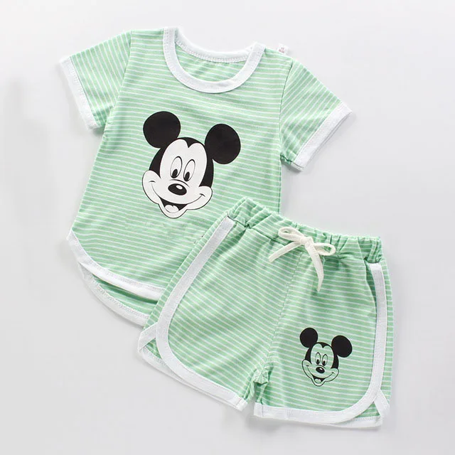 Повседневный комплект одежды из 2 предметов для маленьких мальчиков, футболка с короткими рукавами + штаны с принтом, комплекты одежды из хл...