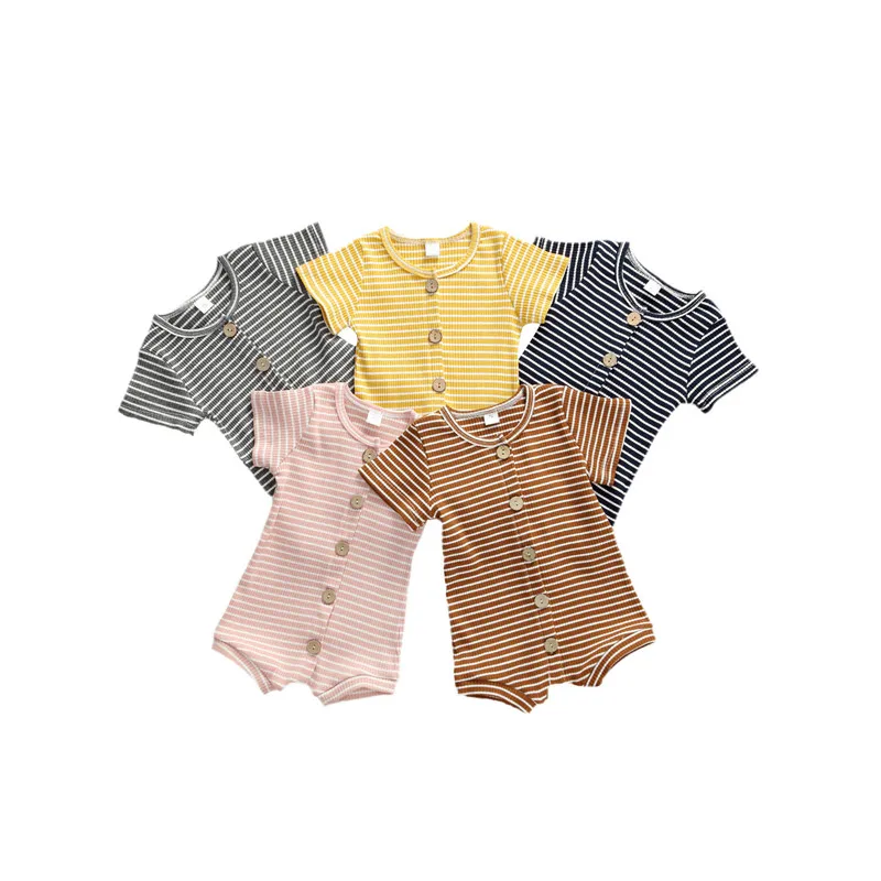 Одежда для новорожденных мальчиков и девочек; Комбинезон; Шорты; Цельный комбинезон с короткими рукавами и пуговицами; Детский комбинезон в полоску с круглым вырезом