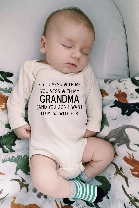 Если вы связываетесь со мной, вы беспорядок с моей бабушкой, младенец, ребенок, мальчик, девочки, боди, Pring печать, письмо, длинный рукав, боди, ...