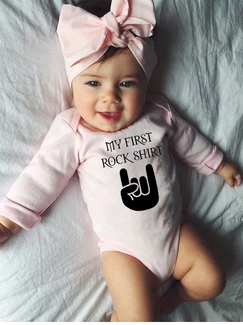 Детская роковая футболка с надписью «Rock My First» хлопковое боди с длинными рукавами для малышей Милая одежда для маленьких мальчиков комбинез...