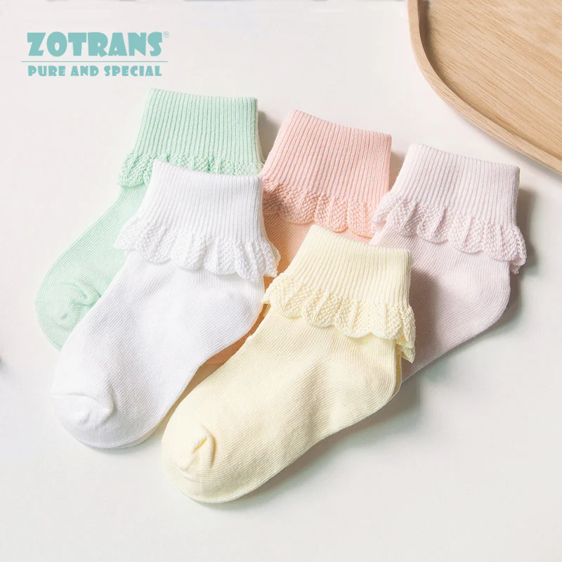 5 пар/лот, милые хлопковые носки с оборками для маленьких девочек, дышащие кружевные короткие носки принцессы для новорожденных, партия для ...