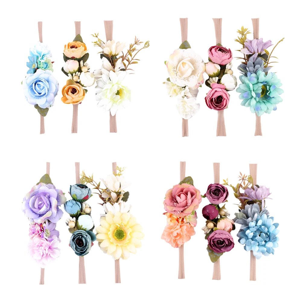 3 шт./компл. смешанный стиль жемчужная лента кружева цветок оголовье повязки на голову для маленьких девочек эластичная лента для волос Детс...
