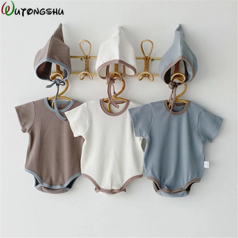 Комбинезоны из хлопка для новорожденных мальчиков и девочек, однотонные комбинезоны с коротким рукавом для новорожденных, одежда для детей ясельного возраста, цельный пляжный костюм для маленьких мальчиков