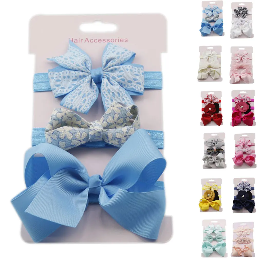 Симпатичные 10 Цвета новорожденных повязка на голову для девочек Младенческая малышей Лук Набор резинок для волос Группа аксессуары 1,5x37 см