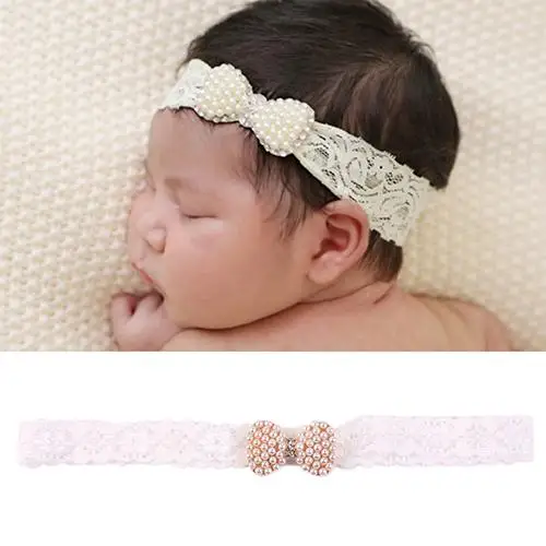 Лидер продаж для маленьких девочек принцесса кружево бантом из искусственного жемчуга головная повязка, причастие повязка на голову голов...