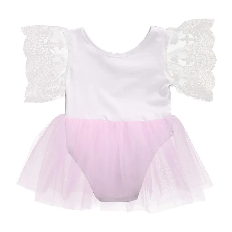 2018 летние новорожденных Детское платье для маленьких девочек милый симпатичный розовый Кружево короткий рукав Комбинезоны для малышек ком...