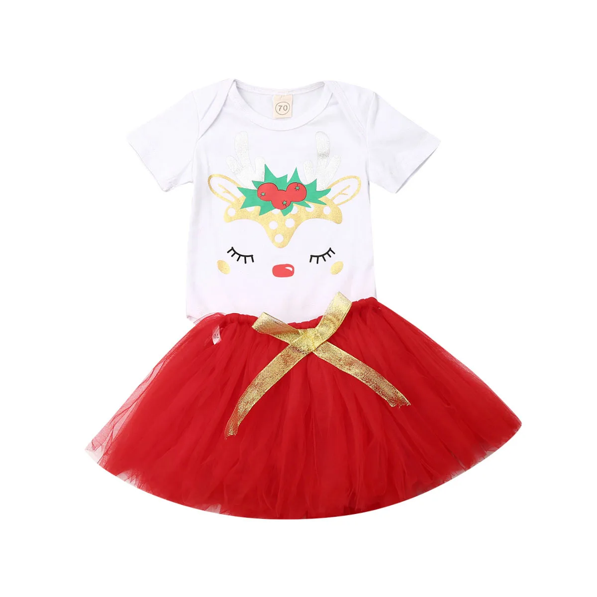 Рождественский комплект одежды для маленьких девочек от 0 до 24 месяцев, рождественское боди для маленьких девочек, нарядная юбка-пачка