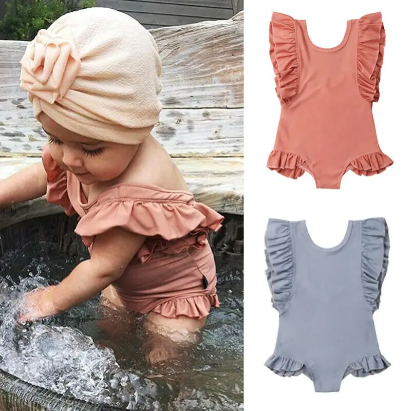 2020 Toddler Baby Girl Swimwear for Kids Peach Bow Swimsuit Strap Orange OnePiece Bikini Summer Beach Swimming Bathing Suit 1-4Y